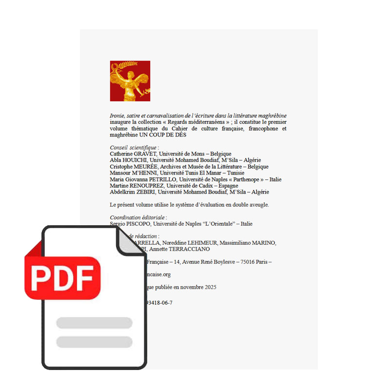 Ironie, satire et carnavalisation de l’écriture dans la littérature maghrébine inaugure la collection « Regards méditerranéens » ; il constitue le premier volume thématique du Cahier de culture française, francophone et maghrébine UN COUP DE DÉS
